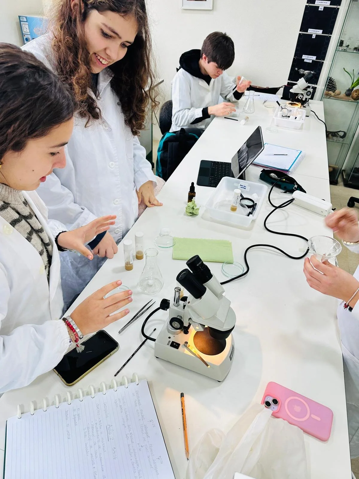 Os alunos do 12.º ano de Biologia iniciaram, no laboratório do Colégio, a investigação com exemplares de Drosophila melanogaster, observando formas selvagens e mutantes e identificando as suas características.