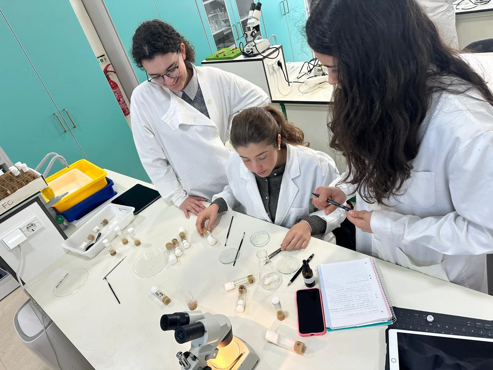 Durante a manhã, participei na aula prática de Biologia do 12.º ano dedicada à Drosophila melanogaster, também conhecida como mosca da fruta. Acompanhei os alunos na realização de cruzamentos, na observação das moscas e na análise das características genéticas.